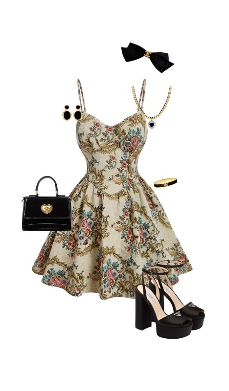 This dress is a must-have for all you fashion lovers! If you’re anything like me, you’ll adore the stunning floral print – it’s as if it’s straight out of a romantic Renaissance painting. It fits so well, accentuating your curves, and has a flow that makes you feel so feminine. And the black heart chain necklace and earrings that come with it are the perfect finishing touch to the look. But let’s not forget about the hair accessories – bows are back and more romantic than ever! Complete the outfit with some platform pumps, and you’ll have the perfect date night outfit. You won’t regret adding this dress to your wardrobe – it’s guaranteed to take your partner’s breath away!