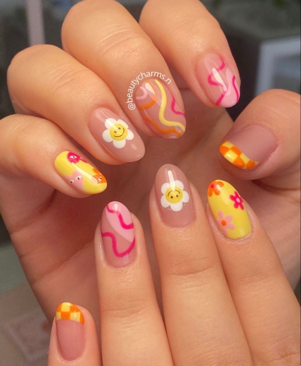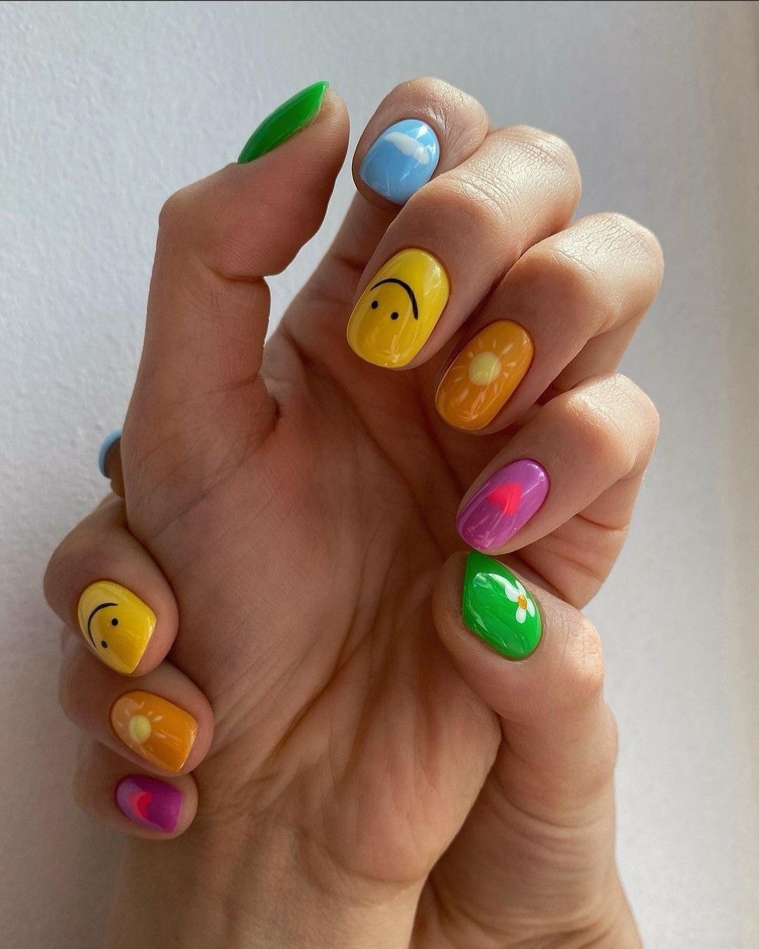 We tried our best to frown while looking at it, but it was impossible because it’s just too cheerful and delightful. So, why not add some happiness to your day with this fantastic nail art? So, go ahead and brighten up your day and spread some joy with this happy nail art!