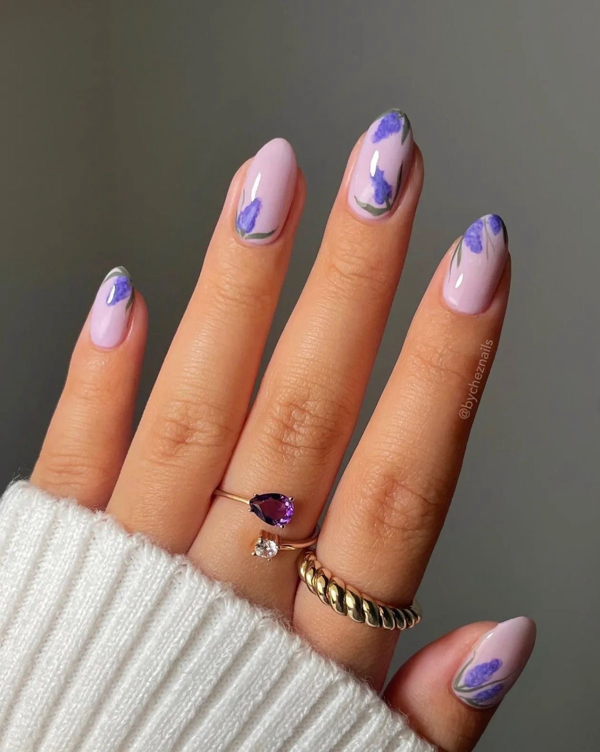 A calming lavender shade is an absolute must-have in your nail polish collection this season. Trust me; it’s the perfect colour to bring a little peace and tranquillity to your day. So why not give this nail design a try? It’s super pretty, and just looking at it will make you feel calm and grounded.