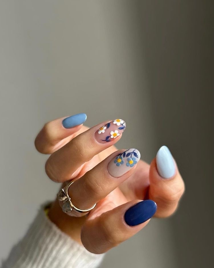 Check out these gorgeous sunflowers! The vibrant blue hues make for the perfect spring manicure.